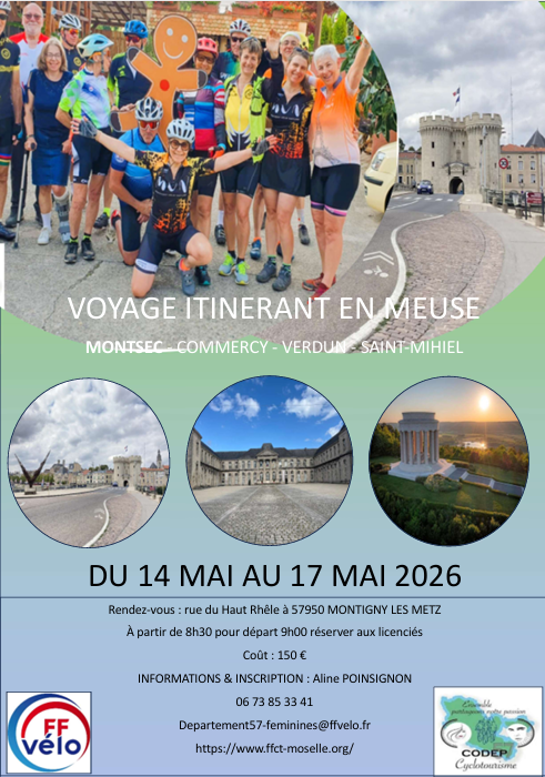 Le Comité départemental de Moselle vous propose un voyage du 14 au 17 mai 2026 en Meuse.